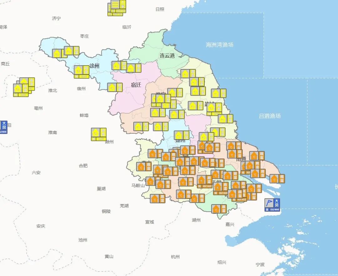 江苏省气象台2024年07月21日09时42分继续发布高温橙色预警