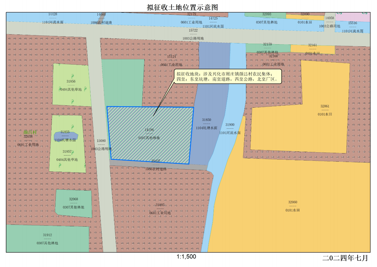 本次拟征收土地位于周庄镇颜吕村颜吕十六组范围内。拟征收土地位置详见附图。实际征收土地范围以最终批准文件为准。