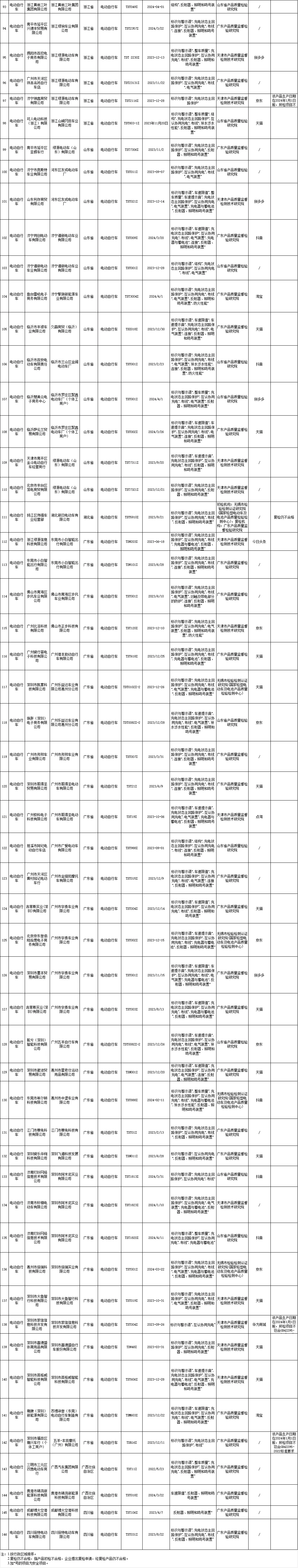 共发现146批次电动自行车不合格