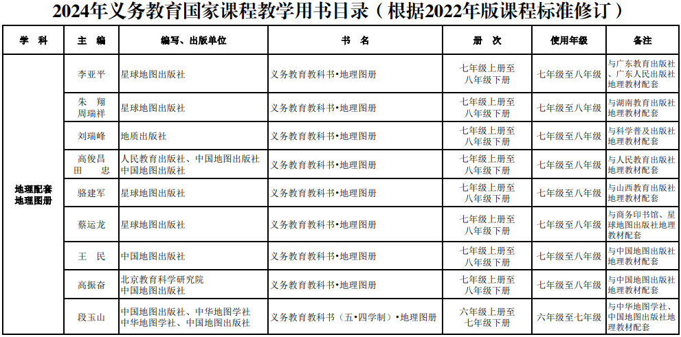 以下是教育部公布的2024年义务教育国家课程教学用书目录(根据2022年版课程标准修订)