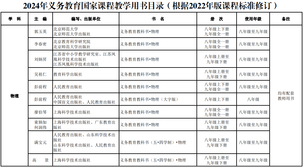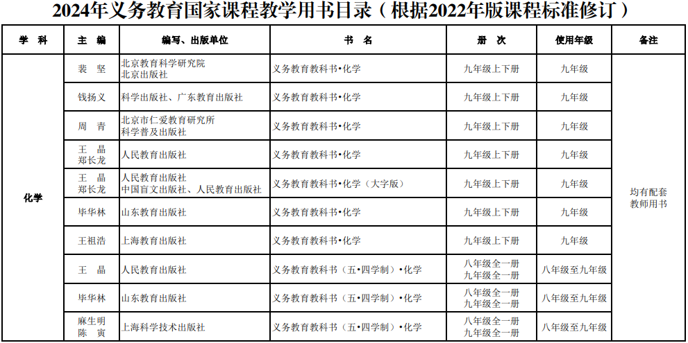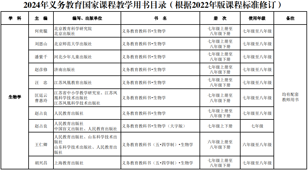 近日,教育部在网站上公布《2024年义务教育国家课程教学用书目录(根据2022年版课程标准修订)》。2024年9月新学期开学,义务教育各学科起始年级将全面启用根据2022年版课程标准修编的新教材。