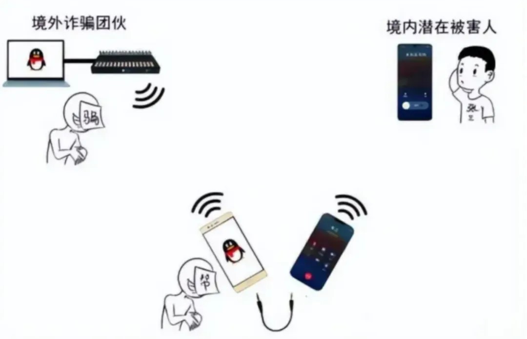 胡某参与的兼职 其实是一种新型诈骗方式 ——架设“手机口” 骗子以“高额薪酬”为诱饵 让求职者准备两部手机 其中一部与骗子语音通话 另一部拨打目标对象手机号 通过免提或手机对录 将境外电话变成国内电话号码实施诈骗