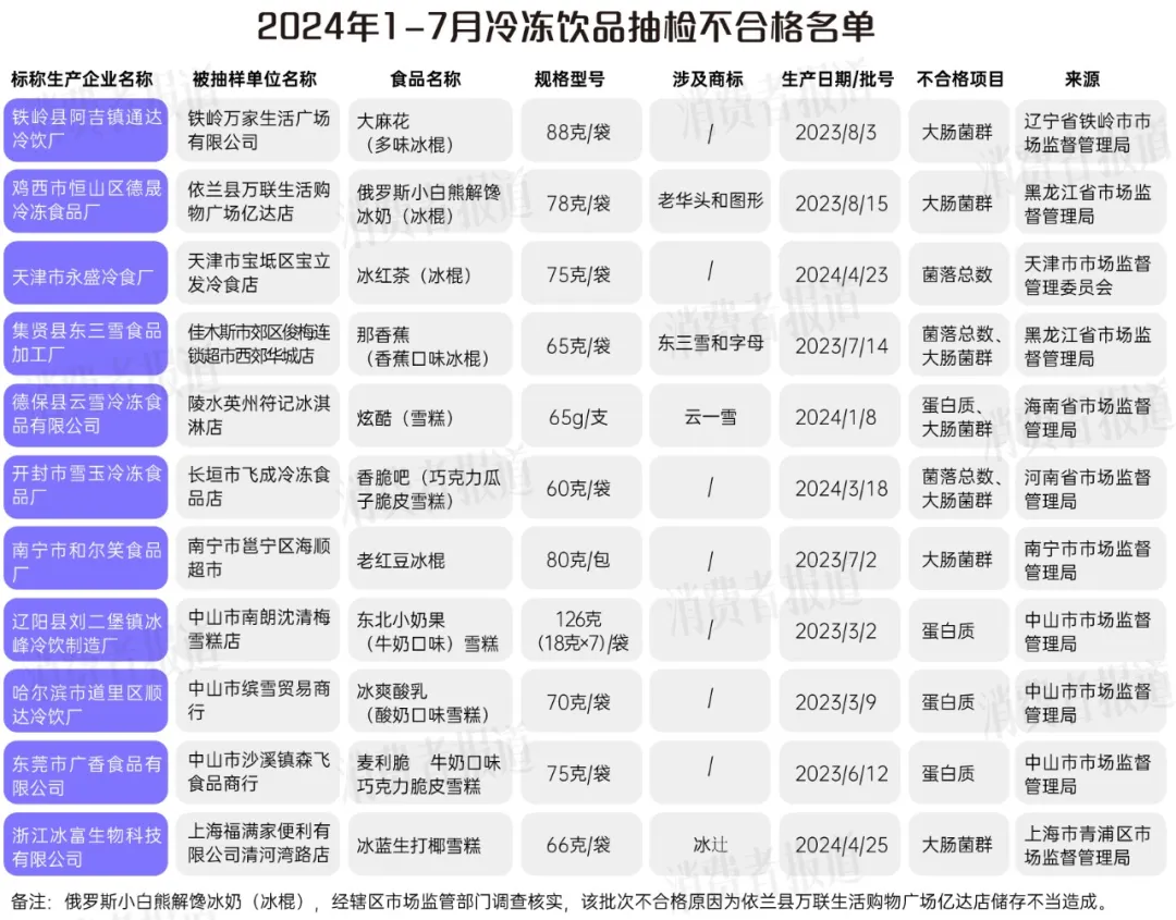 11批次雪糕、冰棍不合格
