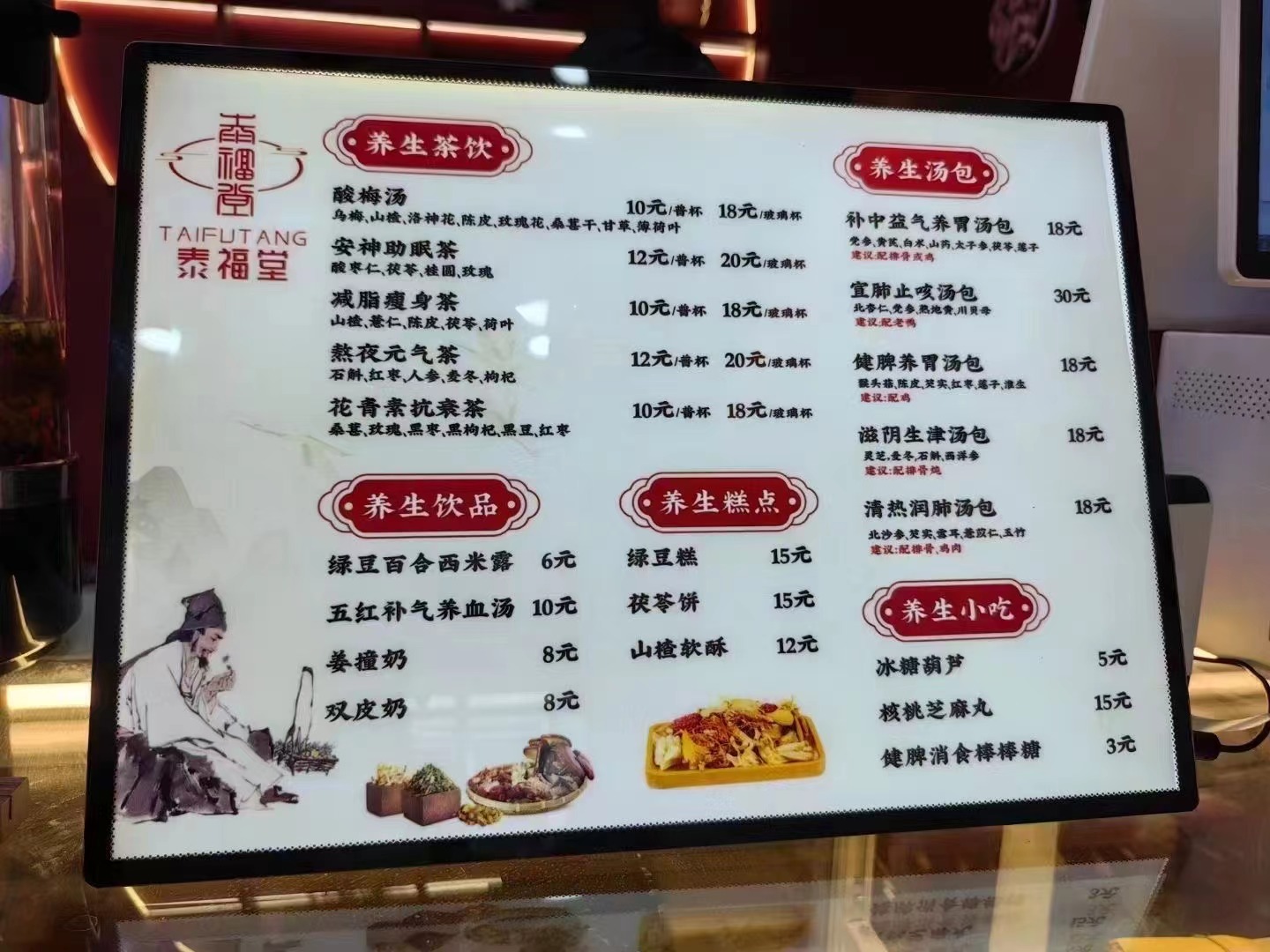 中医院新设中药茶饮门诊颇受欢迎 近日,泰州市中医院东院区一楼新开了一家“食疗养生馆”——泰福堂养生茶馆,受到广大消费者追捧。这家馆子的最大特点,是在茶饮、美食的制作过程中,糅合进药食同源的食材。何谓药食同源?从字面来说,食物即药物,二者之间并没有绝对分界线。比如,出现在小馆“菜单”中的茯苓、芡实、莲子、金银花、猴头菇等,既是食材,也是药材。