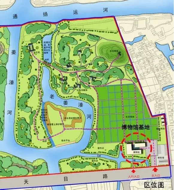 天目山遗址景观项目——天目山观光园位于姜堰城区北郊,与姜堰区博物馆仅一墙之隔,是一座带有遗址保护特色的郊野公园,其中的姜堰天目山古城遗址形成期距今约3100年,当时西周刚刚建立,在时间上早于常州淹城(距今约2500年)。