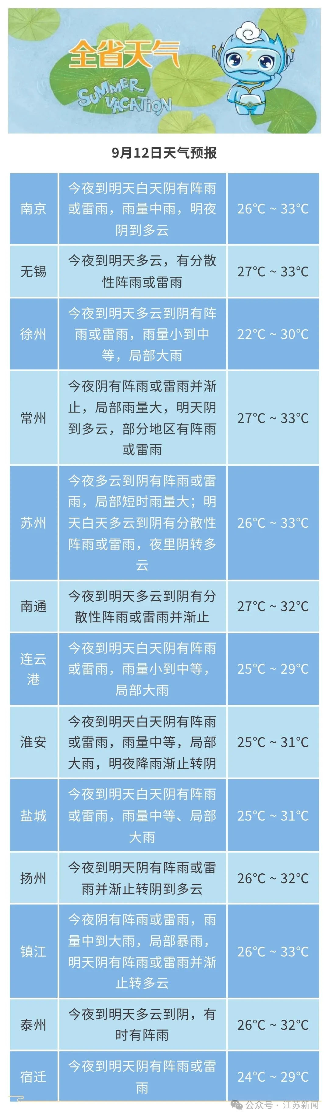 江苏全省阴有阵雨或雷雨