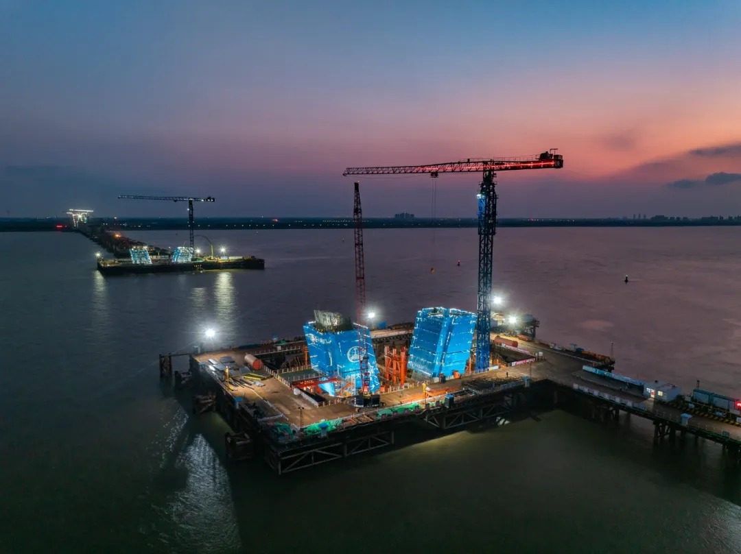 截至9月3日 崇启公铁长江大桥完成总体进度的48% 主桥及引桥钻孔桩完成100%