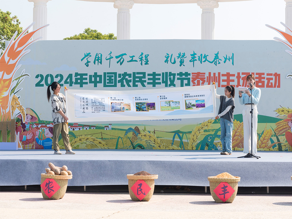 2024年10月11日,中国农民丰收节泰州主场活动在泰州市海陵区香草湾农场拉开帷幕。本次活动以“学用千万工程 礼赞丰收泰州”为主题,旨在庆祝新中国成立75周年及农民丰收节七周年,展现了农业农村发展的新成果。