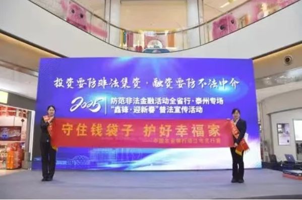 靖江支行青年突击队走进“鑫锋·迎新春”普法宣传活动现场,向来往群众宣传防范和处置非法资金、防范电信网络诈骗等知识,将新春祝福送到群众身边。