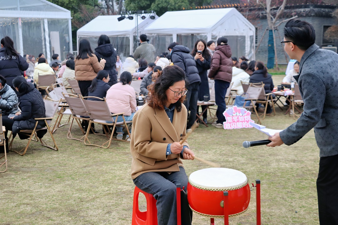 一场别开生面的“点兵点将”趣味竞答点燃了现场气氛,在击鼓声中传递娃娃,回答问题,表演才艺,栩栩如生的石矶娘娘画作、针线勾勒的哪吒……每位女职工都用自己的方式展现出女性的多才多艺和无限可能。