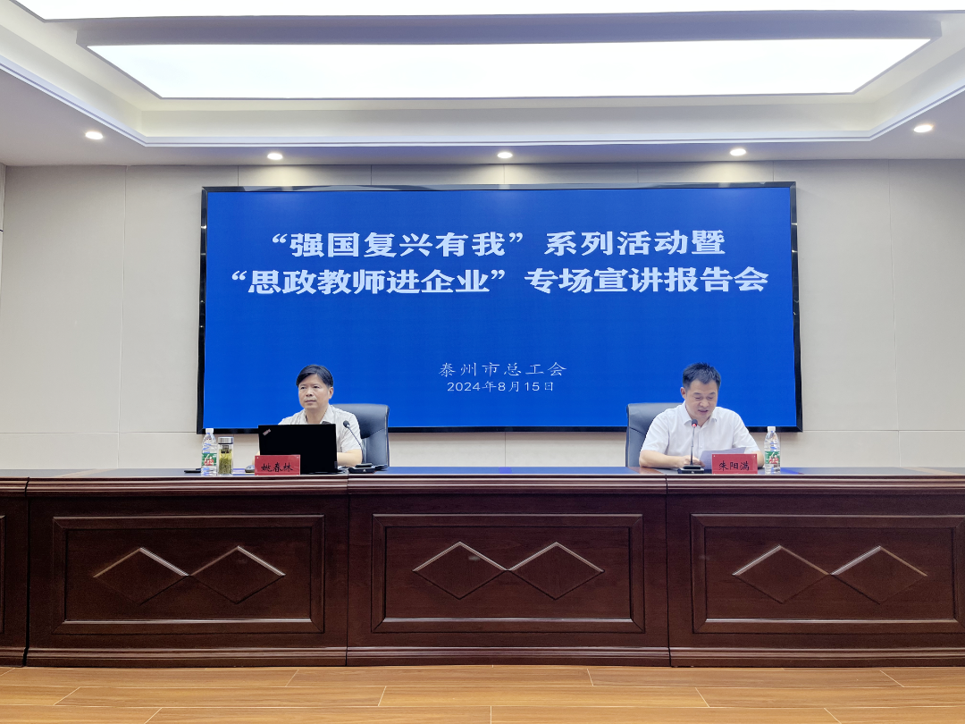 8月16日,泰州市工会学习贯彻党的二十届三中全会精神宣讲报告会在江苏中泰建发集团有限公司举行。市委宣讲团成员、泰州职业技术学院马克思主义学院院长姚春林作宣讲报告。市总工会副主席朱阳满主持报告会。