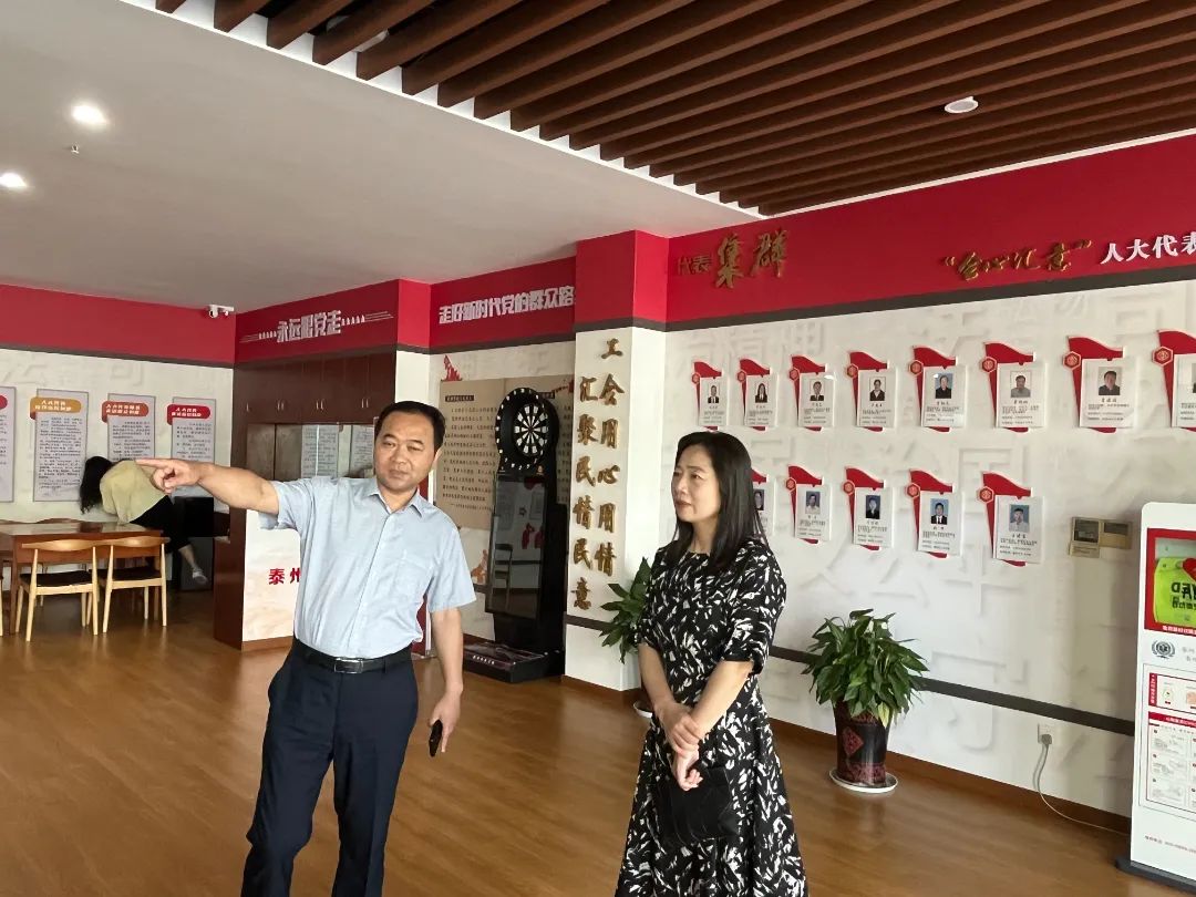 8月4日上午,市纪委监委第八派驻纪检监察组组长夏晖、副组长李国强,随机调研工会户外劳动者驿站建设管理情况。市总工会四级调研员杨小敏、高港区总工会主席史连美陪同调研。