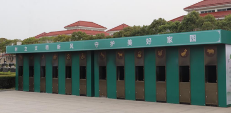 十二属相祭奠炉,以中国传统文化中的十二生肖为设计元素,将生肖文化与殡葬祭奠相结合。当家属来祭扫的时候,能够快速找到对应的属相标志物,进行献花、焚烧纸钱,既满足了市民的祭奠需求,又保护了墓园的整体环境,更能确保用火安全。