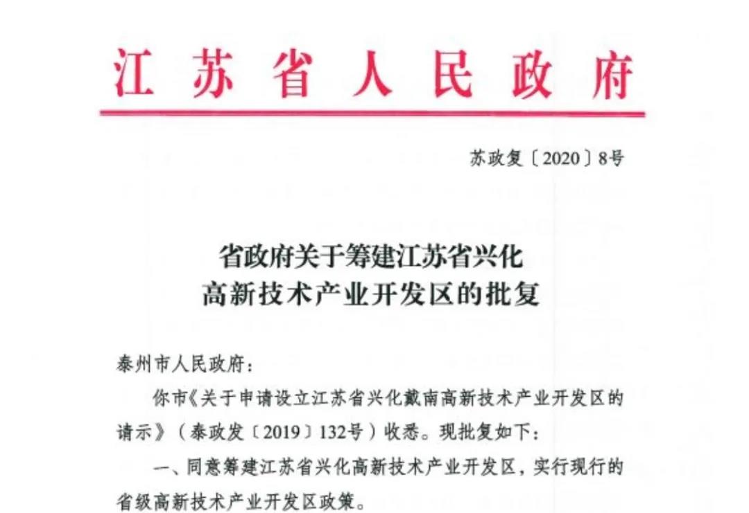 江苏省兴化高新技术产业开发区是在江苏戴南科技园区基础上升级而成。