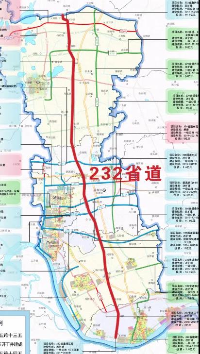 232省道泰州段自233 省道东侧的兴化、盐都界,向南经兴化市、姜堰区、泰兴市和靖江市,止于靖江上五圩港汽渡,它是名副其实的泰州“公路脊梁骨”。232省道靖江段定位城市终极西环,是《靖江城市总体规划2013-2030》中靖江市区西至界限,总体而言,232省道以东、江平路以南、城西大道以东区域,整体纳入靖江市区统筹。232省道是靖江东兴、生祠、马桥通向苏南的最便捷通道,也是靖江前往泰州的快速路,232省道转G328海姜快速路,去泰州、姜堰比走高速还要方便。