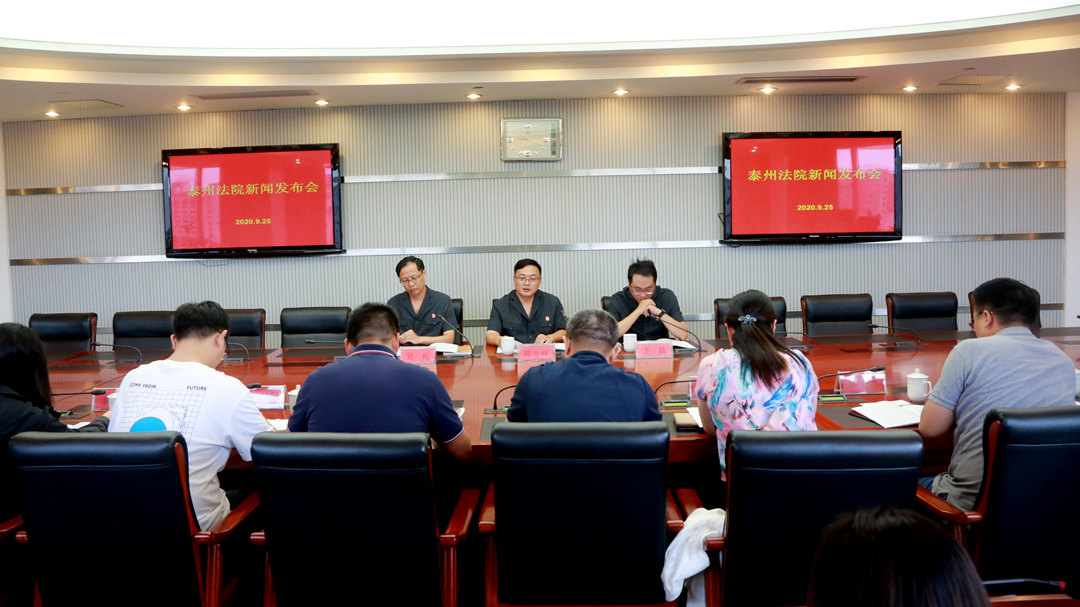 9月25日上午,泰州市中级人民法院联合泰州医药高新区法院召开“涉企案件”新闻发布会。新华日报、人民数字、泰州电视台、泰州日报、***、太灵通等多家媒体记者应邀参加。市中院新闻处负责人于波主持发布会。
