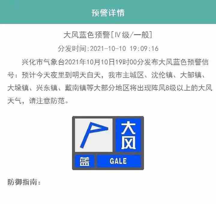 请注意做好防风防雨准备