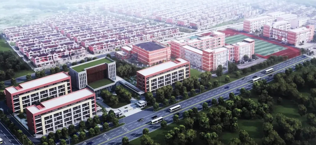 (姜堰区城西实验学校扩建后的校园整体鸟瞰图)