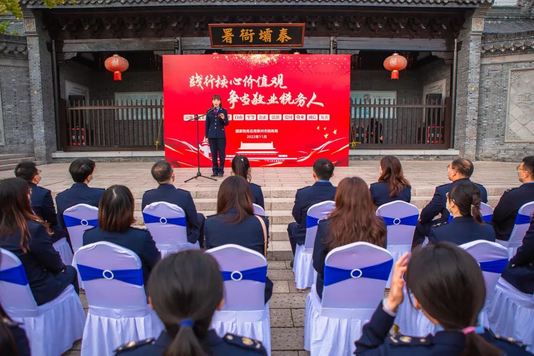 为深入贯彻落实习近平新时代中国特色社会主义思想和党的二十大精神,引导广大税务青年深入践行社会主义核心价值观,11月16日下午,泰州市税务局在江苏盐税博物馆开展“践行核心价值观 争当敬业税务人”社会主义核心价值观主题宣讲活动,市局27名税务青年参加活动。