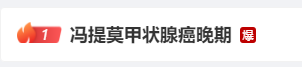 昨晚,#冯提莫甲状腺癌晚期#的话题登上微博热搜第一