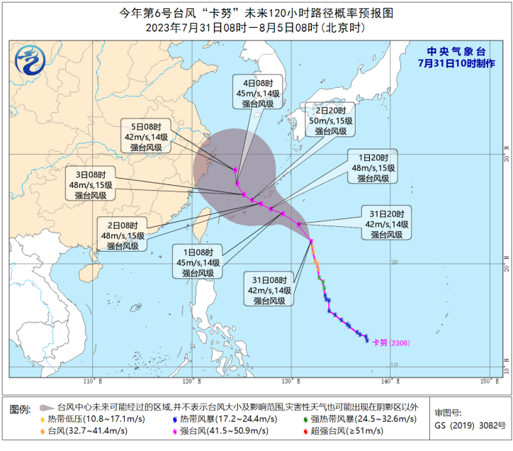 中央气象台今早消息:一觉醒来,卡努路径调整很大啊。预计8月2日夜间它会移入东海,逐渐转向偏北方向移动,移速明显减慢。