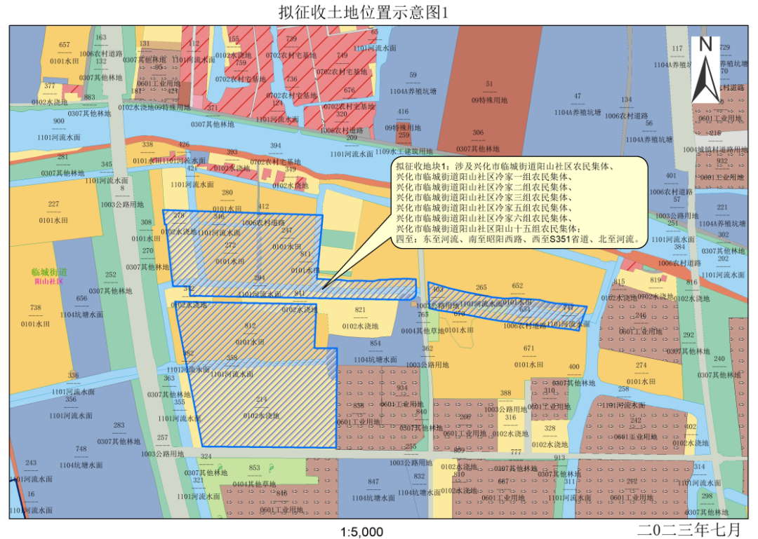 拟征收地块1:位于临城街道阳山社区集体、冷家一组、冷家二组、冷家三组、冷家五组、冷家六组、阳山十五组范围内
