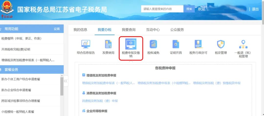 https://etax.jiangsu.chinatax.gov.cn,进入“公众服务”。