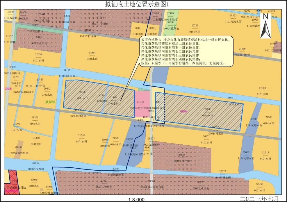 拟征收地块1:位于荻垛镇荻垛村荻垛一组、荻垛二组,向阳村周石一组、周石二组、周石三组、周石四组范围内。拟征收土地位置详见附图。
