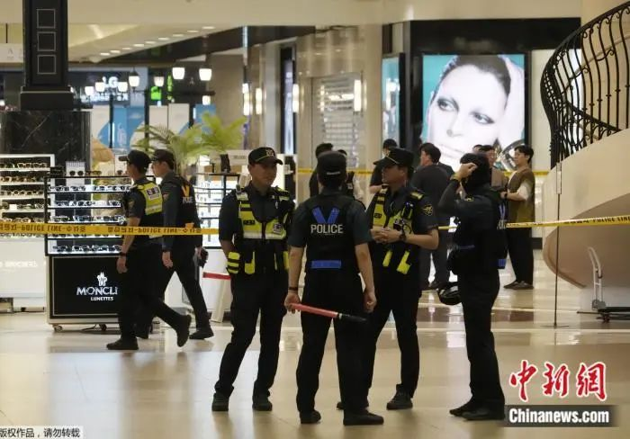 8月3日,韩国京畿道城南一百货商场发生随机行凶事件,警方封锁现场。