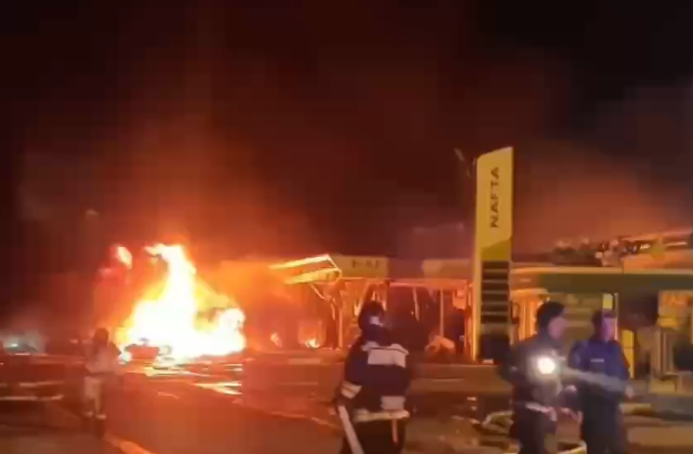 引发附近一加油站爆炸