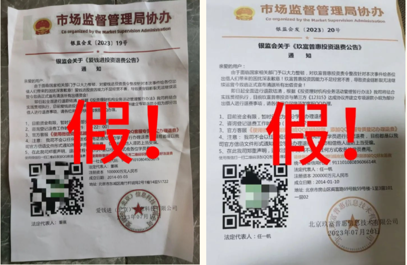 诈骗分子通过非法渠道获取公民个人信息,邮寄伪造的国家机关文书,声称某培训机构或投资平台正在集中办理退费,引导受害人扫描二维码添加客服、加入群聊。