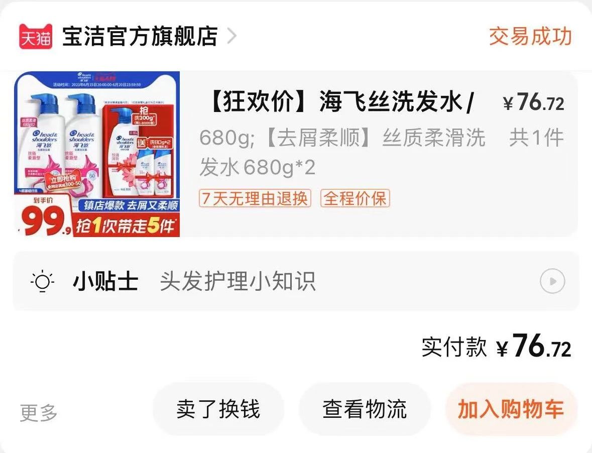 8月21日,来自湖北黄石的市民赵女士向湖北经视记者介绍,今年的“618”活动期间,她在天猫宝洁官方旗舰店内花了76.72元购买了两瓶680g海飞丝洗发水。8月19日,孩子游泳回家洗澡,她将一瓶未开封的680g海飞丝给孩子使用,不料孩子在浴室大声尖叫,原来孩子在这瓶海飞丝中挤出了大量棕色虫卵。