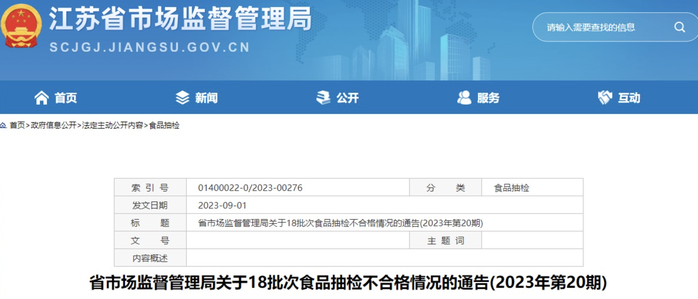 针对抽检中发现的不合格食品,江苏省市场监督管理局已责成相关设区市市场监管部门立即组织开展处置工作,查清产品流向,督促企业采取下架召回不合格产品等措施控制风险,依法处理违法违规行为,及时将企业采取的风险防控措施和核查处置情况向社会公开。