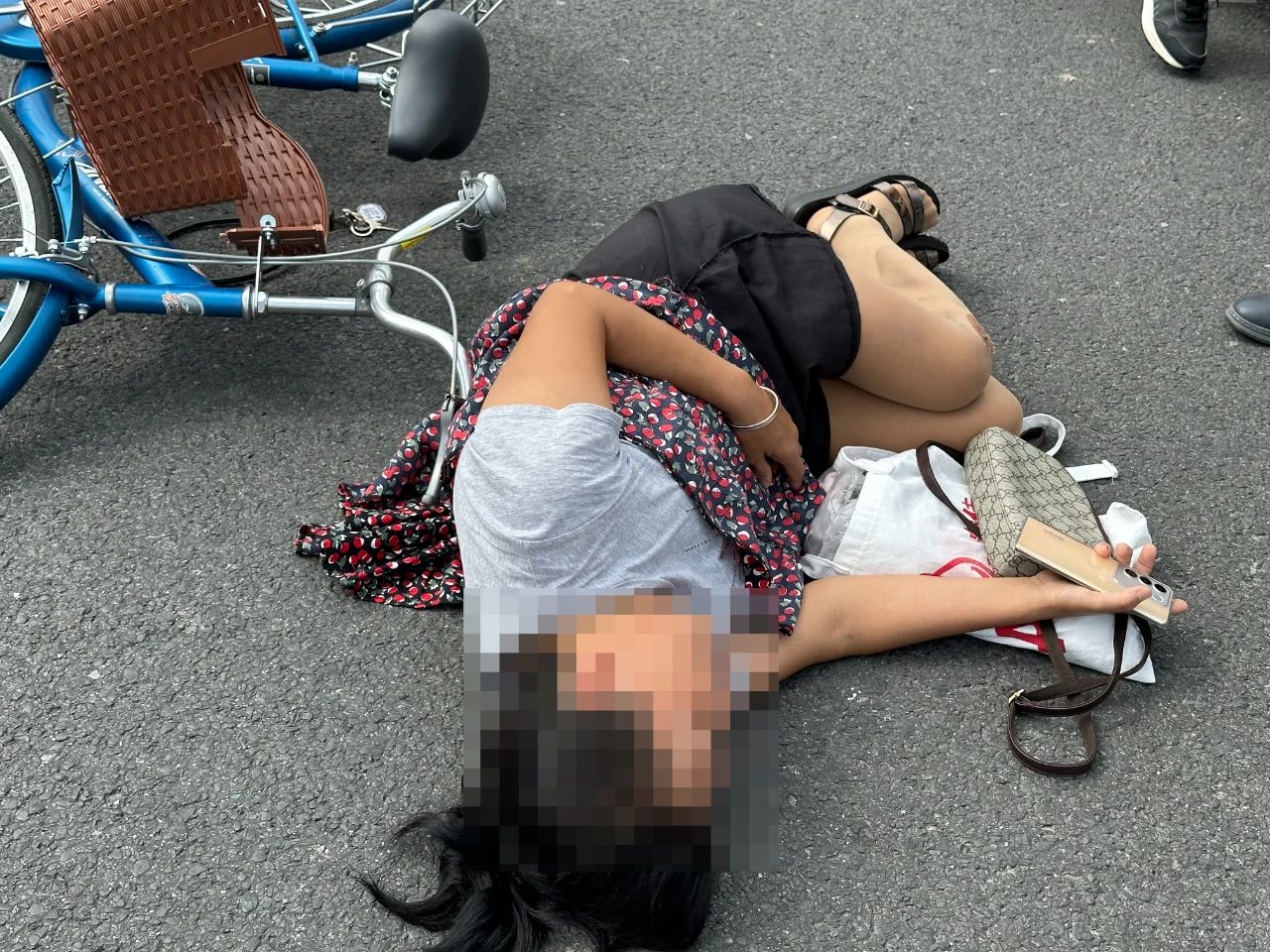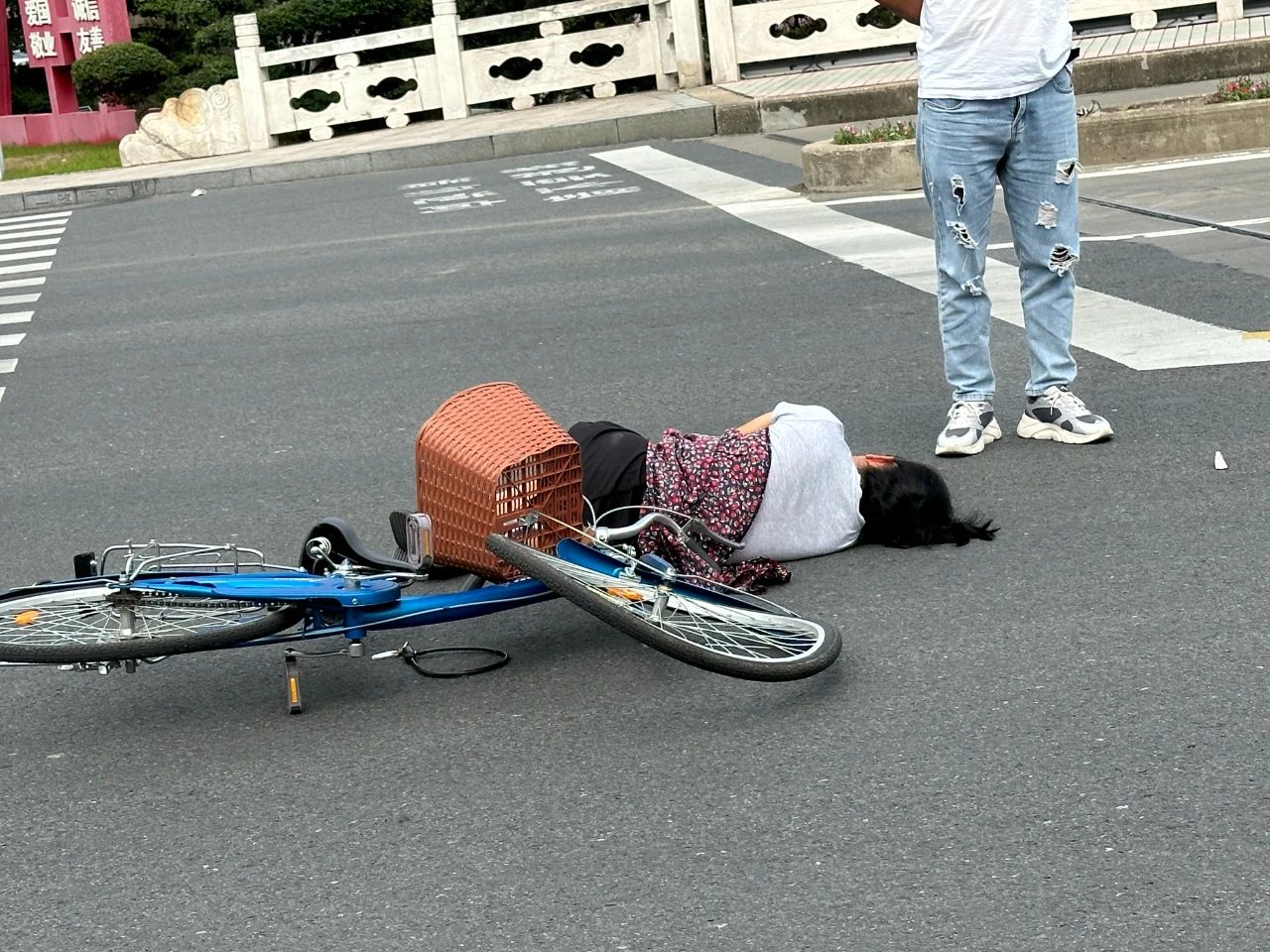 近日网友爆料称在9月3日下午14:00许,城区振兴桥上发生一起交通事故,一辆由北向南的机动车与一辆骑自行车的大妈发生碰撞,自行车骑行人员倒地不起。
