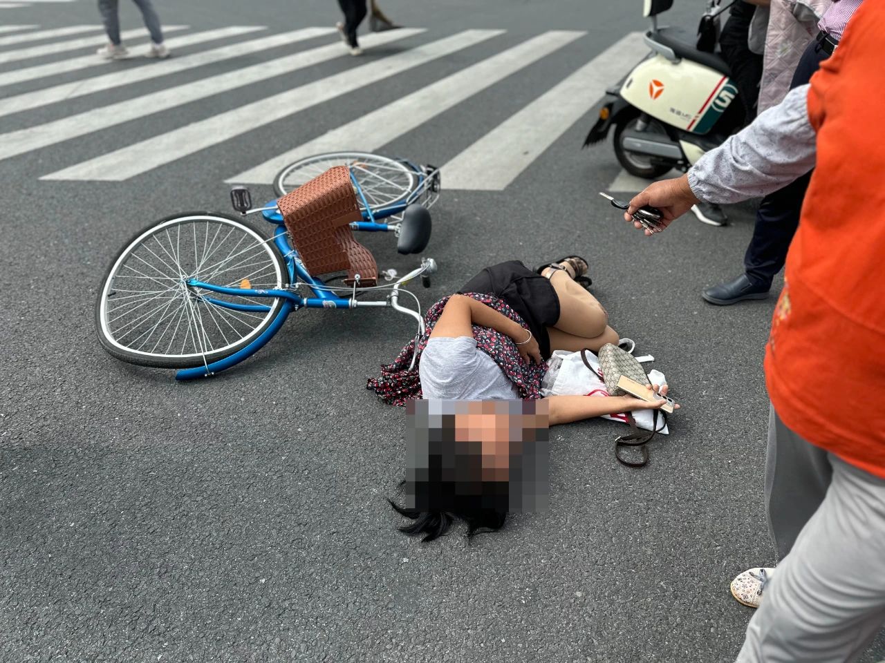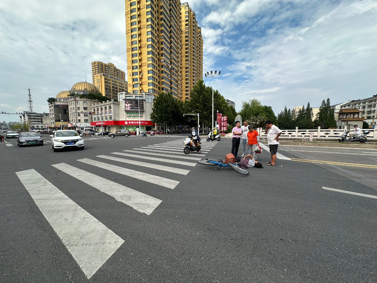 近日网友爆料称在9月3日下午14:00许,城区振兴桥上发生一起交通事故,一辆由北向南的机动车与一辆骑自行车的大妈发生碰撞,自行车骑行人员倒地不起。