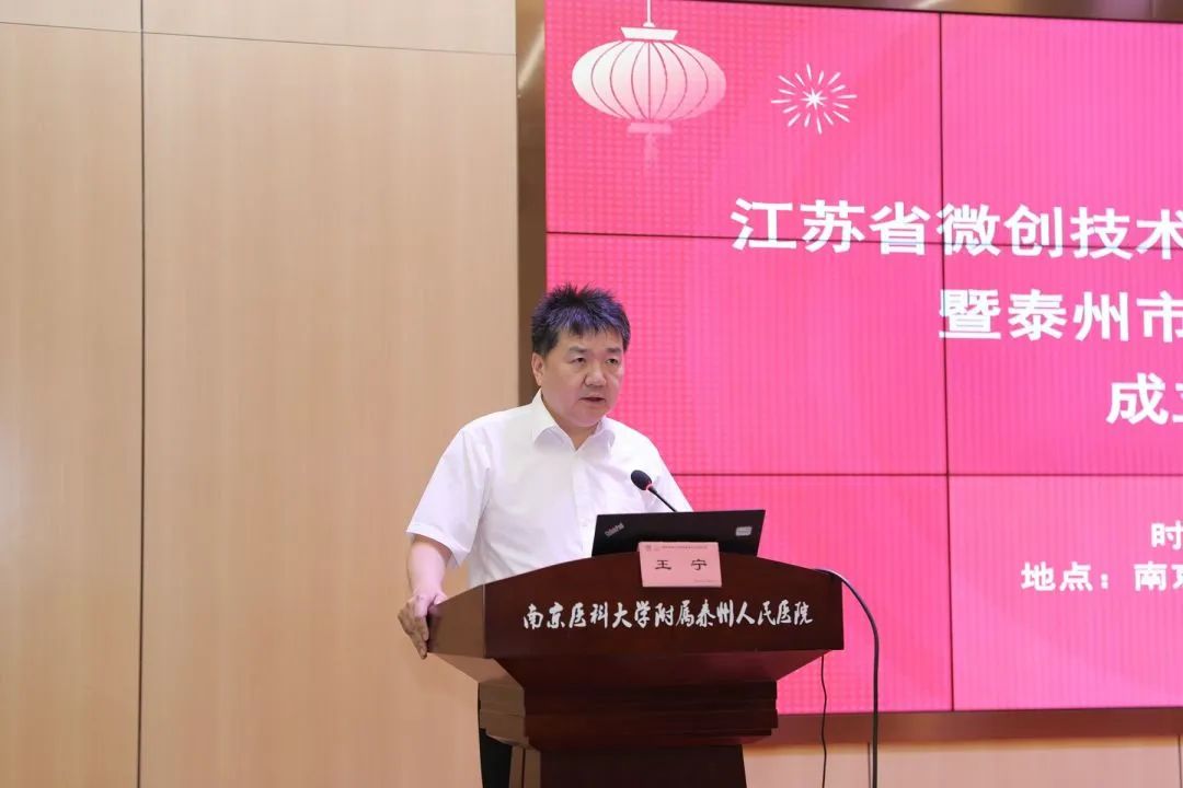 泰州市卫生健康委员会医政医管处处长常伟宣读泰州市微创技术质控中心成立文件,并为中心揭牌。