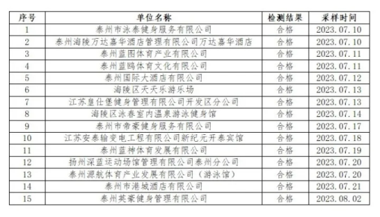 9月6日,记者又将此事反馈给了泰州市卫生监督所。工作人员表示,针对暑期泳客数量大增、易发生卫生安全问题等情况,7月以来,市卫生监督所对市区正常营业的游泳场馆,开展了全覆盖专项检查及水质抽检。对检查中发现的卫生管理存在疏漏的单位,已逐一下达整改意见书,并将对水质检测不合格的有关单位依法给予行政处罚。