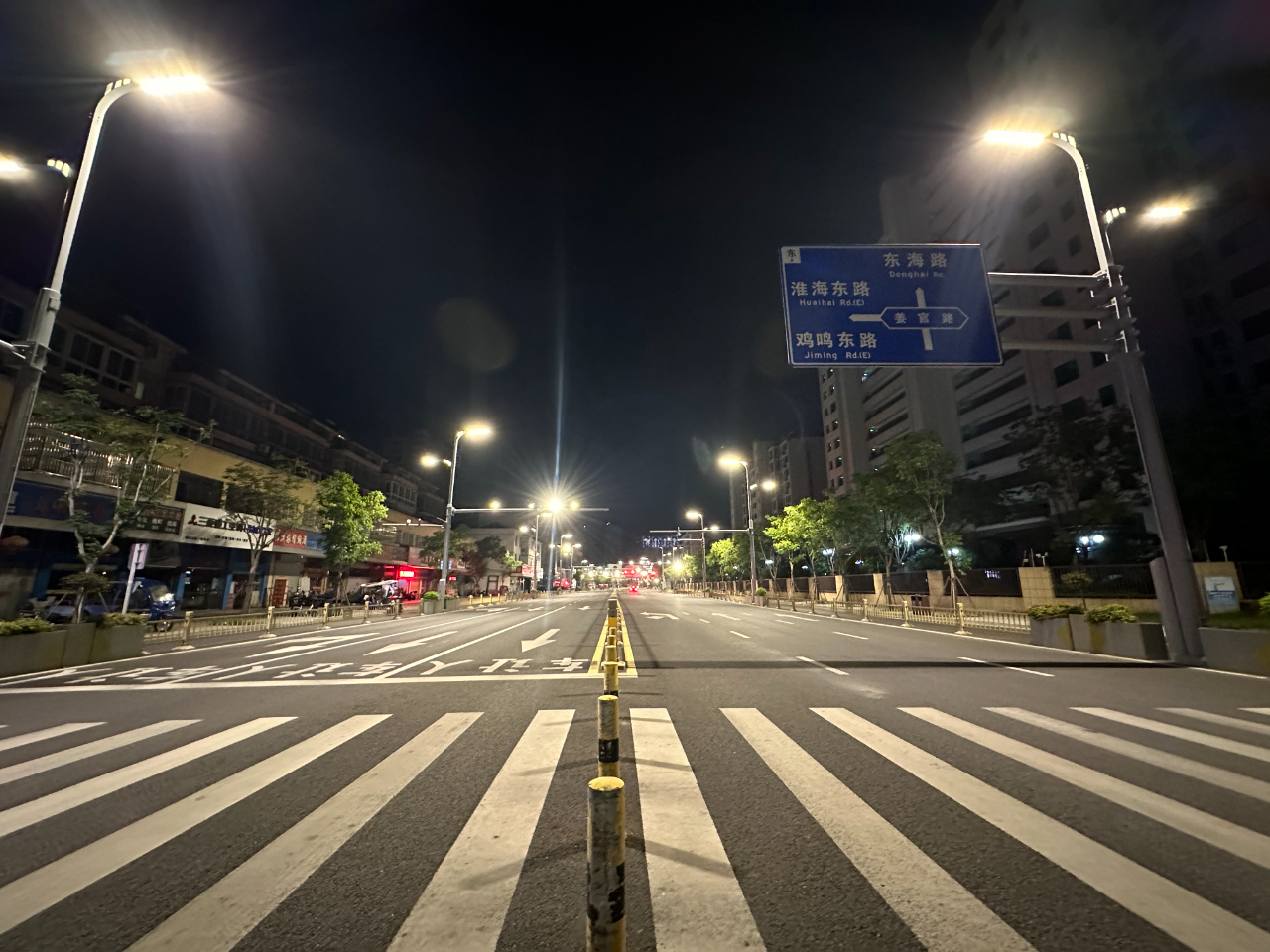 0:06分的姜堰大道和人民路,已经没有白天的喧嚣,多了份宁静。