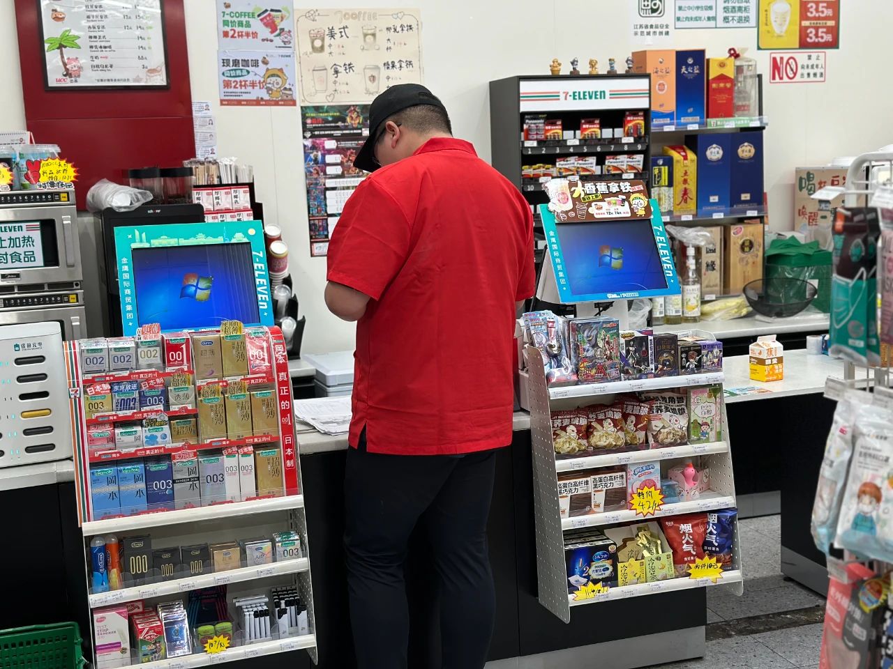 02:59城区一家24小时便利店,店员正在补货。