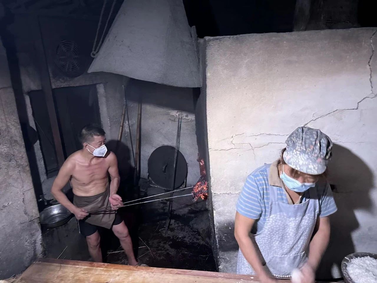 03:13分,城区的大炉烧饼店已经在当天的烧饼和面条做准备了,鱼汤刚刚熬好了。