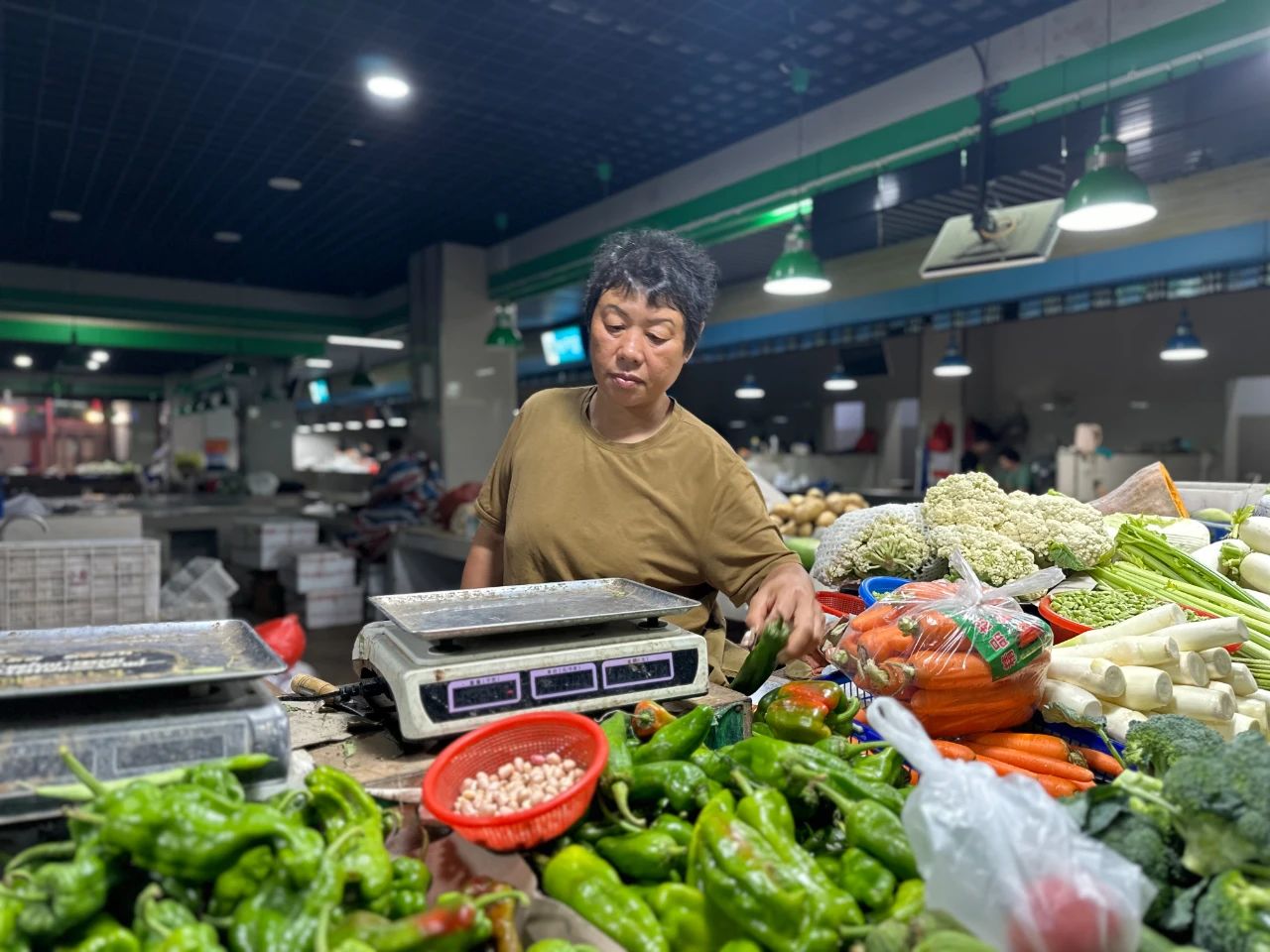 虽是0:43分,但曹安市场各档口前依然是灯火通明 ,各种食材经过商贩们精挑细选后流向全区各大菜场。