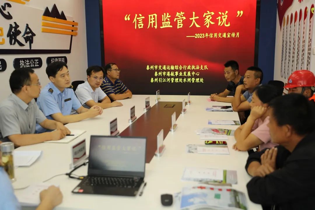 联合泰州市交通运输综合执法支队水上二大队组织船民开展“诚实守信大家谈”座谈会,让船民朋友们畅所欲言,深入了解信用管理相关内容,切实提高了船民珍惜信用、诚信过闸的意识,进一步规范船舶过闸行为。活动期间,共计发放宣传册 300份,邀请船民朋友座谈达到150余人次,进一步提升行业管理信用意识,促进信用理念成为行业管理共识,助力交通信用体系建设。