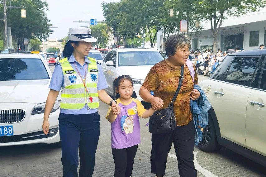 “小朋友,我带你走斑马线,注意安全。”“您好,安全起见,下次请务必戴好电动车头盔。”一大早,交警海陵大队的民警来到城东中心小学鼓楼校区门口,开启“护学”模式。他们穿梭于人流车流间,引导学生安全过马路,提醒驾驶人减速慢行、有序停放,忙碌的身影成为学校周边一道靓丽的风景线。