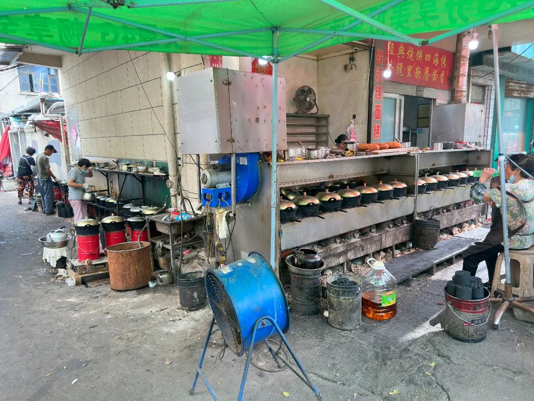老板说每年淡季的时候,店门口就摆着15口锅一起做,一天能卖出300多个,而到了每年的八月,特别是临近中秋节,就开始用60口锅一起做,这个时候需求量大,一天从早到晚要做出1000个左右。