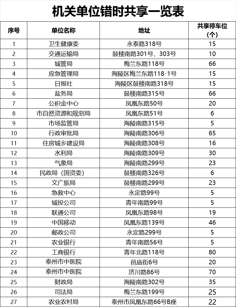 免费开放停车泊位