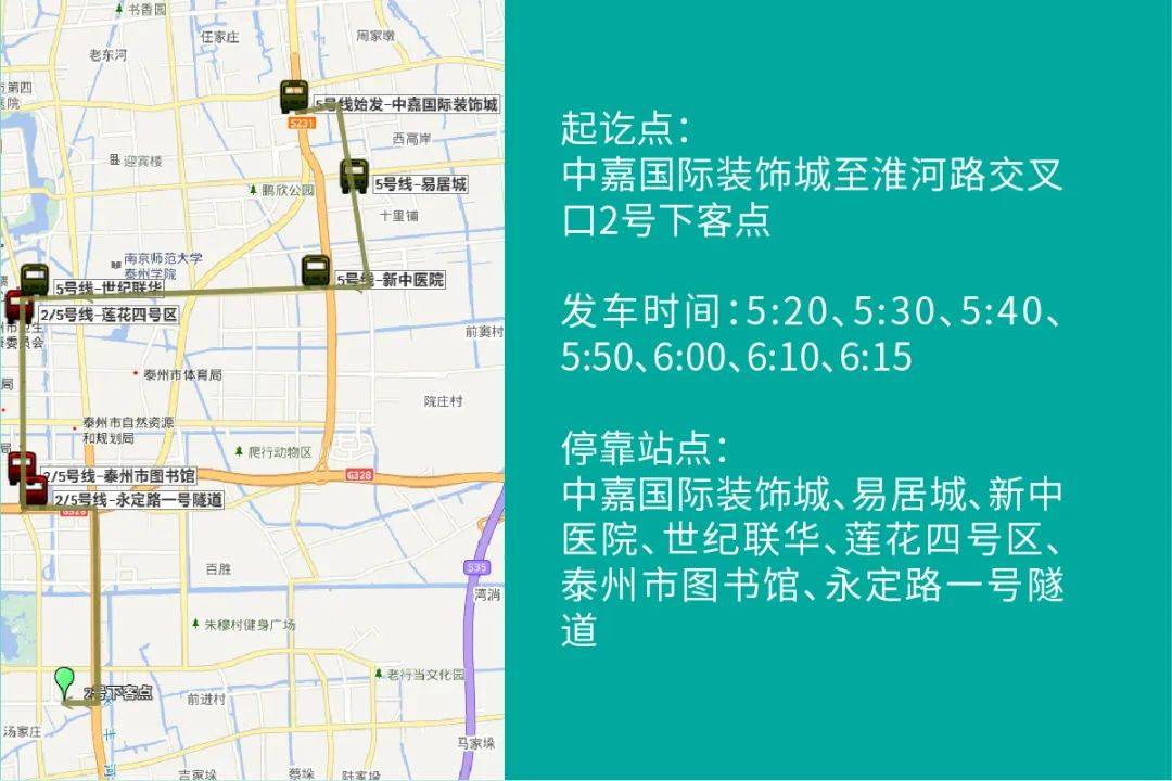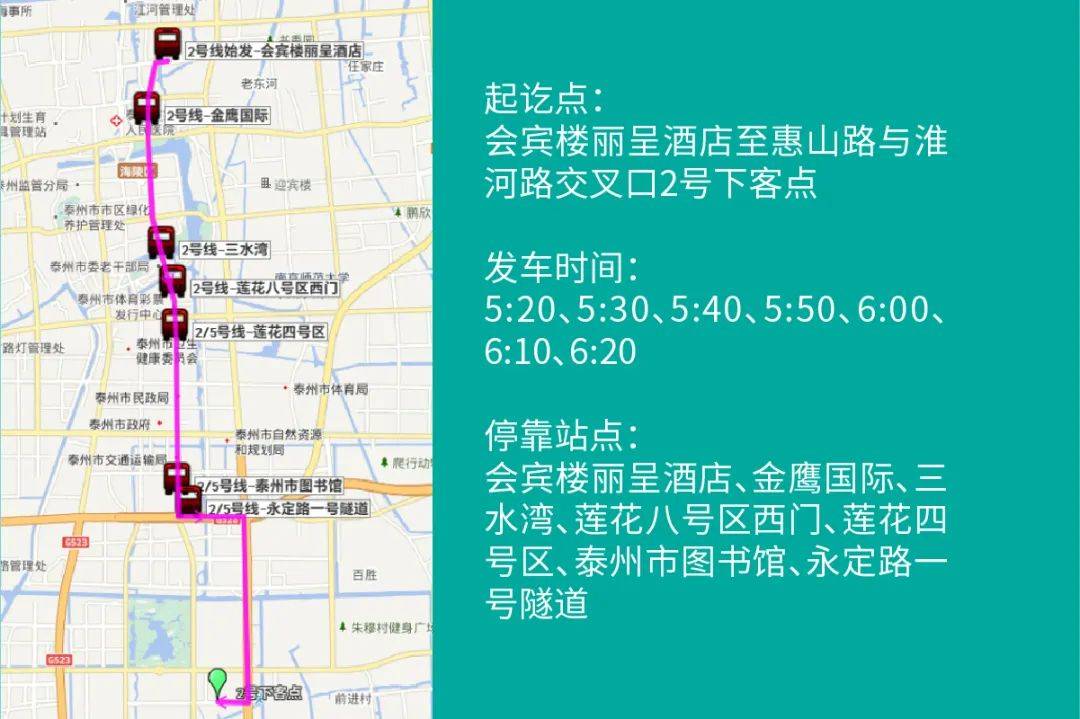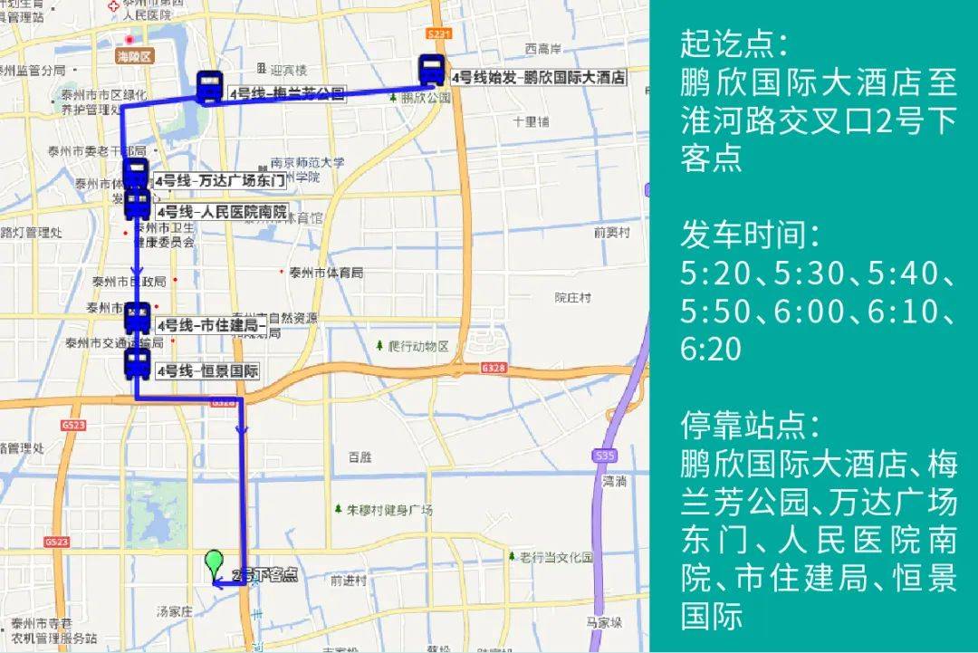 泰州体育公园北门(起点)—海军东路—鼓楼南路—静安路—桃园路—迎春东路—人民东路—人民西路—南园路—静安路—海陵南路—周山河路(折返)—海陵南路—海军东路—泰州体育公园体育场(终点)