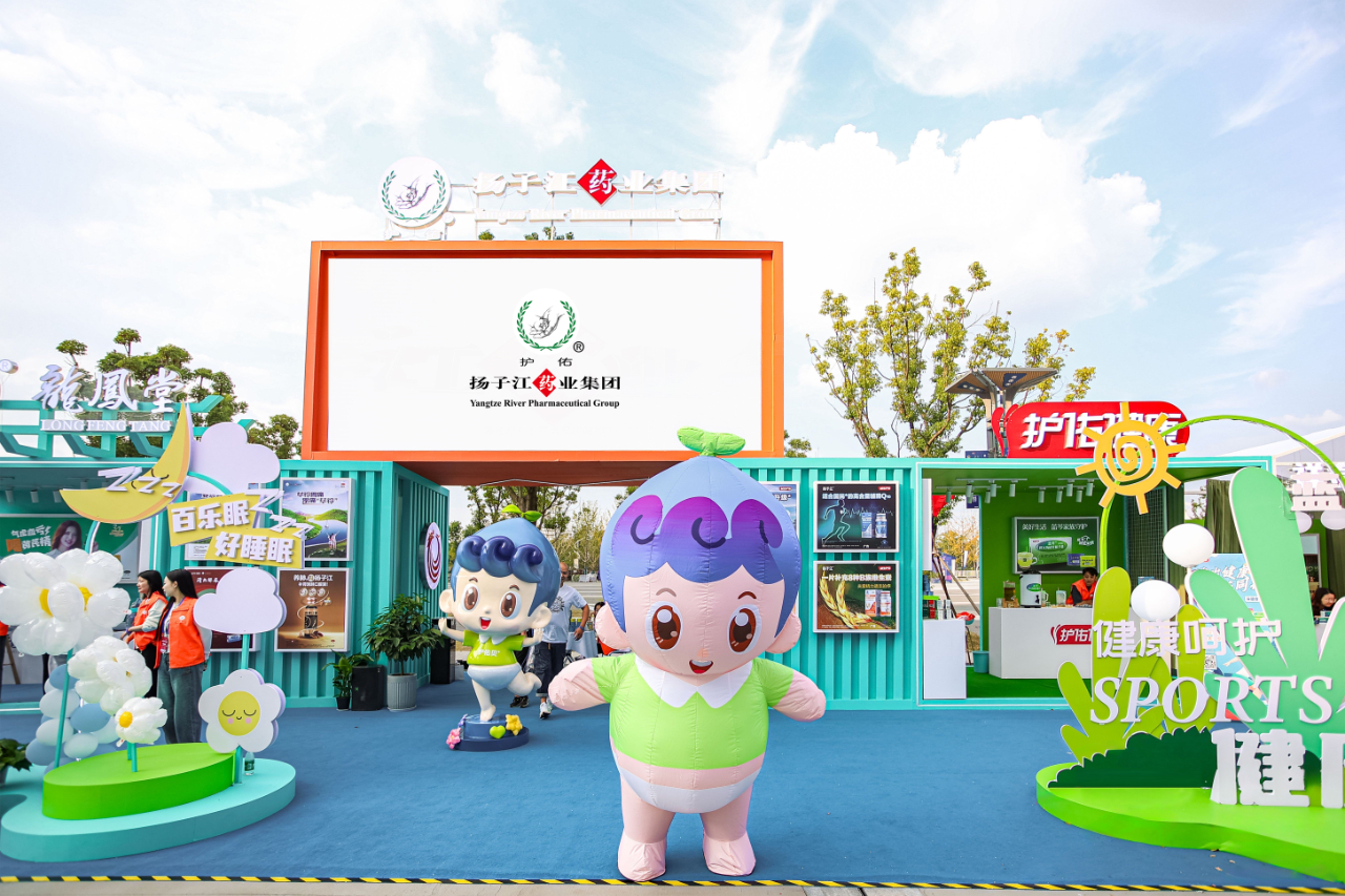 扬子江药业集团还设置了旗下龙凤堂“明星”中药产品展示、自有海丰农场有机农产品试吃、造型各异的完赛打卡点、一分钟健康跳绳和八段锦模仿游戏等多种互动环节。