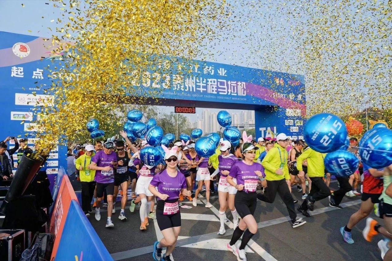 10月15日上午8点 备受期待的首届 扬子江药业 2023泰州半程马拉松赛 (简称“泰马”) 正式开跑