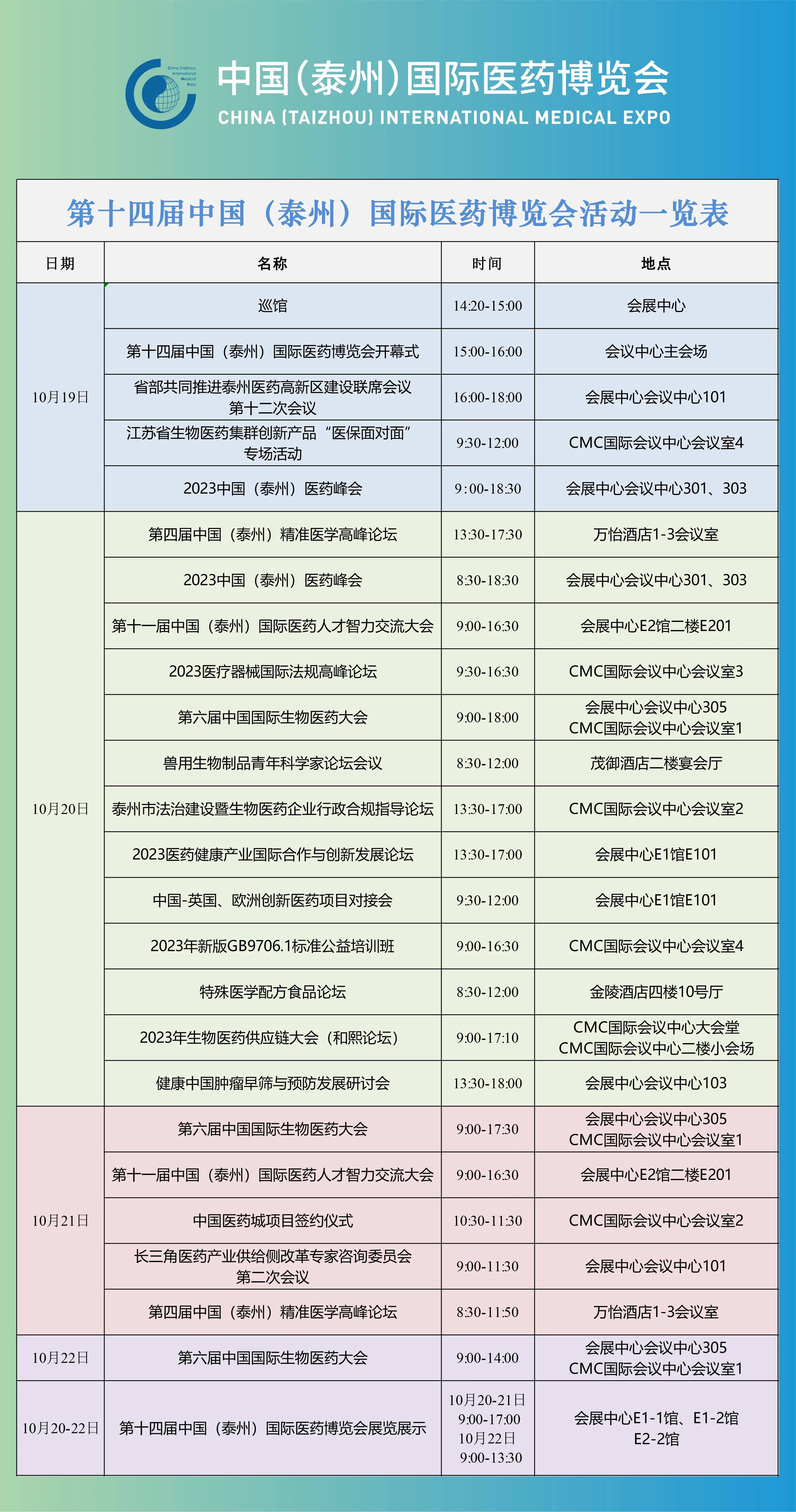 由中国国际商会主办,泰州市人民政府、中国国际贸易促进委员会江苏省分会承办的第十四届中国(泰州)国际医药博览会将于2023年10月19-22日在江苏泰州中国医药城举办。