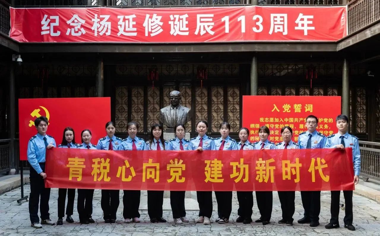 泰州市税务局、海陵区税务局的共青团员和青年理论学习小组成员们共同参观了杨延修纪念馆,了解了革命先辈杨延修的生平事迹,实景感悟老一辈共产党员艰苦奋斗、敢闯敢干、聚焦实业的红色精神。